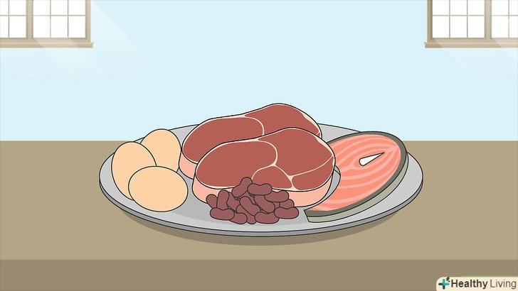Вживайте достатньо білків. білок необхідний для росту м'язів, так що вживайте його при кожному прийомі їжі. Їжте яловичину, свинину, курку, рибу та інші види нежирного м'яса. Якщо ви не їсте м'ясних продуктів, включіть в свій раціон тофу, бобові, кіноа, ячмінь і яйця.