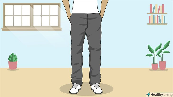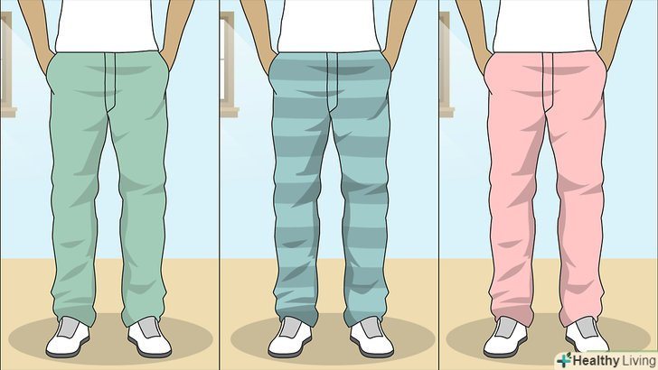 Носіть вільні штани. це найшвидший спосіб зробити ноги не такими тонкими на вигляд. Вибирайте штани свого розміру, але вільного крою. Існують найрізноманітніші фасони і моделі, в яких ваші ноги будуть здаватися повніше, але при цьому не створиться враження, ніби штани вам великі.- Розкльошені моделі теж підійдуть. Такі штани щільно облягають стегна і розширюють донизу від колін, і в них здаються менш худими.