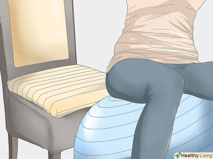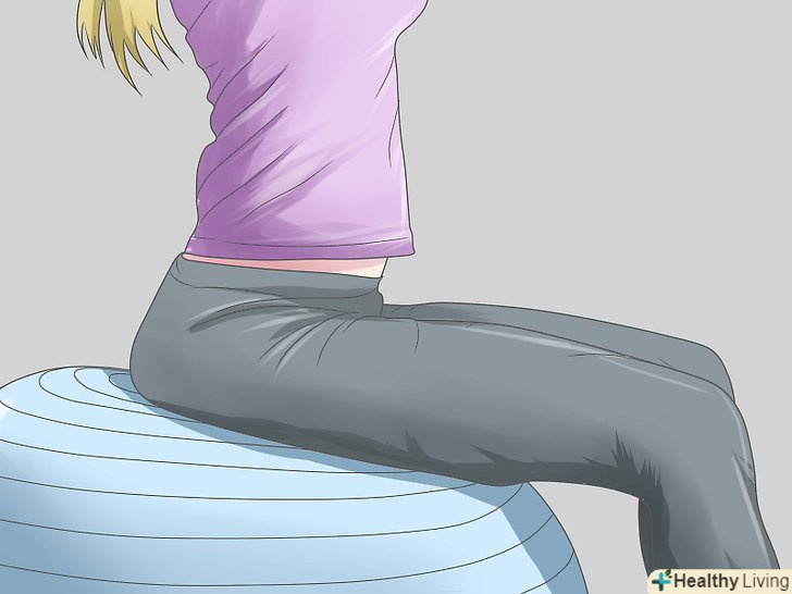 Сядьте на м'яч. переконайтеся, що поруч з вами є стілець або диван на випадок, якщо ви втратите рівновагу.- Розсуньте ноги на відстань від 50.8 см до 63.5 см.