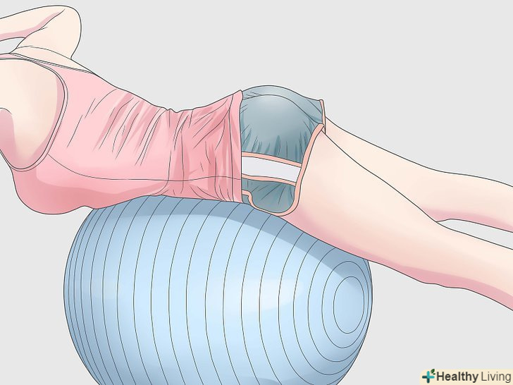 Почніть вправлятися в підйомі тулуба з положення лежачи, використовуючи гімнастичний м'яч. після пологів такий вид вправ допоможе зміцнити черевні м'язи. Можете почати тренуватися після шеститижневого обстеження і з дозволу вашого лікаря.- Переконайтеся, що гімнастичний м'яч знаходиться на рівні середини вашої спини, а ноги розставлені приблизно на 50.8 см, при цьому ступні повинні стосуватися підлоги.