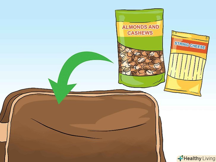 Упакуйте здорові закуски. тривалі поїздки на машині викликають нудьгу, а нудьга, відповідно, може пробудити в вас почуття голоду. Запасіться закусками, які дозволять відчувати ситість, але не важкість у животі. [3]- Невеликий пакет з овочами, які можна легко з'їсти в машині-наприклад, морква і перець-це і є легка і здорова закуска.
