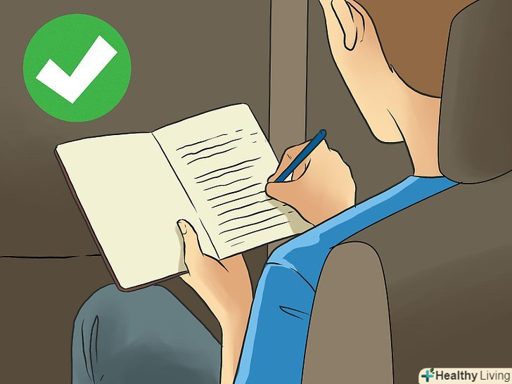 Напишіть що-небудь. можливо, ви відкладали написання листа (електронного або звичайного). Може, у вас в голові склався довгий список справ, і ви повинні записати його. Тривалу поїздку можна використовувати для особистих цілей, таких як записи, що в свою чергу теж відверне вас. Ви також можете вести щоденник, писати історії або робити домашнє завдання. [4]