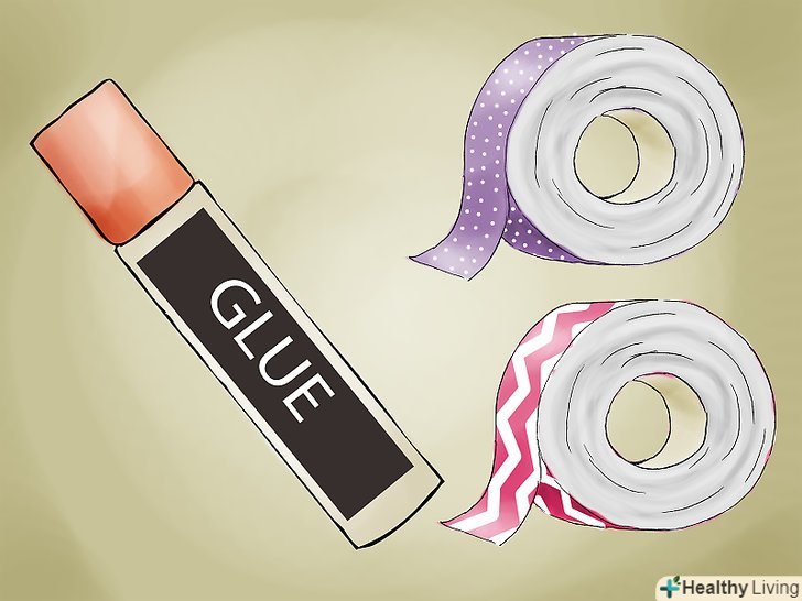 Купуйте клей-олівець та/або скотч. коли прийде час вклеювати фотографії, листівки та інші матеріали в щоденник, вам знадобиться який-небудь липкий матеріал. Клей-олівець добре підійде, тому що він не розвозить бруд і не займає багато місця у валізі або рюкзаку. Однак, ви також можете використовувати декоративний скотч, щоб фіксувати моменти подорожей на сторінках щоденника. [2]- Декоративний скотч добре підходить для щоденника мандрівника тому, що він випускається у великій кількості кольорів і відтінків. Ви можете знайти його в місцевому магазині товарів для творчості та рукоділля.