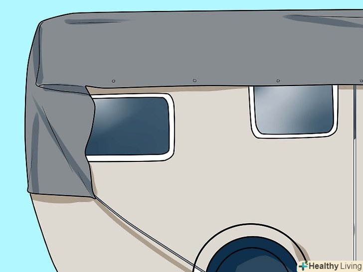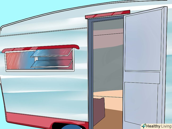 Щільно обгорніть всю нижню частину трейлера водонепроникним матеріалом, щоб захистити його від вітру і холоду. як варіант, подумайте про те, щоб викопати траншею і помістити в неї трейлер таким чином, щоб колеса були нижче рівня поверхні землі, а двері над землею. (Однак можуть виникнути проблеми через дощ або сніг. Перевірте дренажні властивості грунту.)