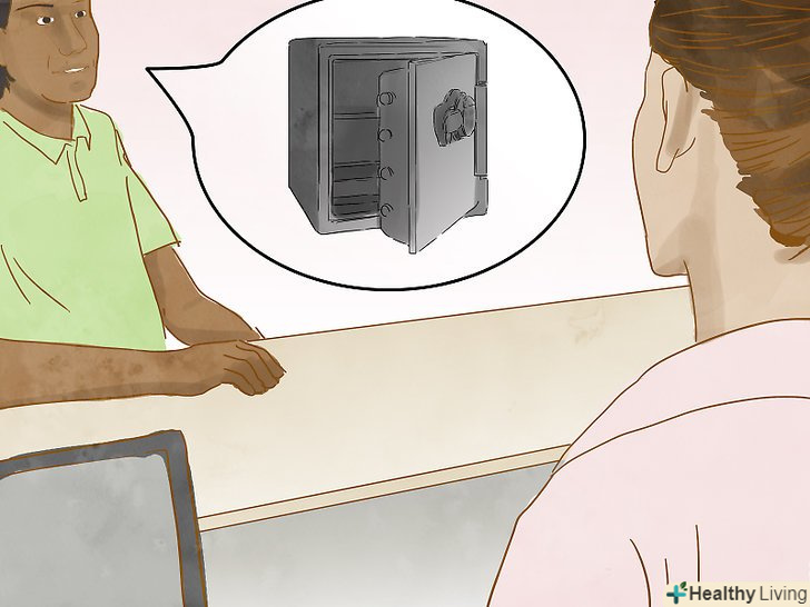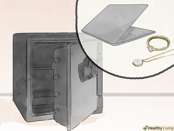 Закривайте цінні речі в сейфі, коли виходите з номера. зазвичай готелі надають сейфи в номерах для захисту цінних речей. Сейфи з комбінацією, яку ви задаєте самі, набагато безпечніші, ніж сейфи з ключами. [13]- Злодії найчастіше націлені на електронні предмети, такі як ноутбуки, аудіоплеєри та планшети. У сейф потрібно класти саме ці речі.