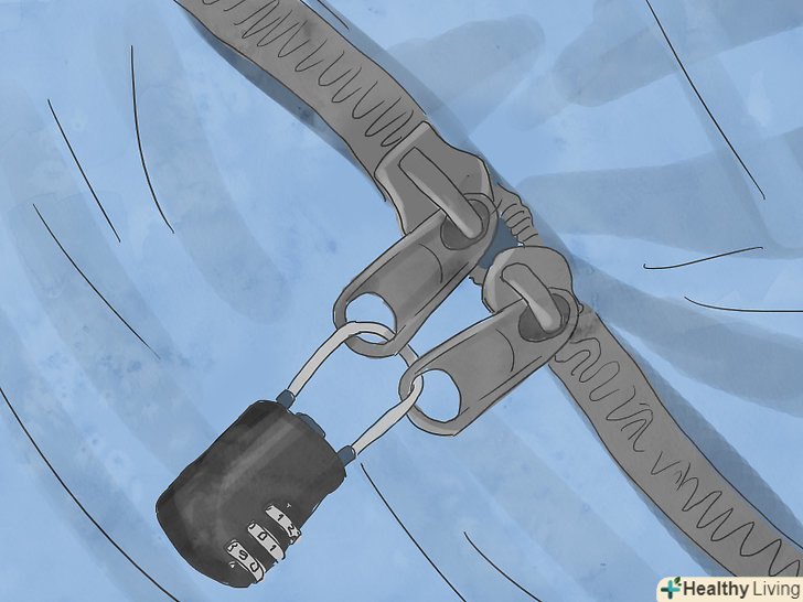 Використовуйте замки для багажу і техніки. маленькі замки, призначені для захисту багажу і техніки, не відлякають професіонала, але допоможуть утримати рядового злодюжку. Злодії зазвичай шукають легку здобич, а замки вкажуть на те, що ви – пильний мандрівник. [16]- Такі замки можна знайти в більшості господарських магазинів, магазинах електроніки, валіз або у продавців в Інтернеті.