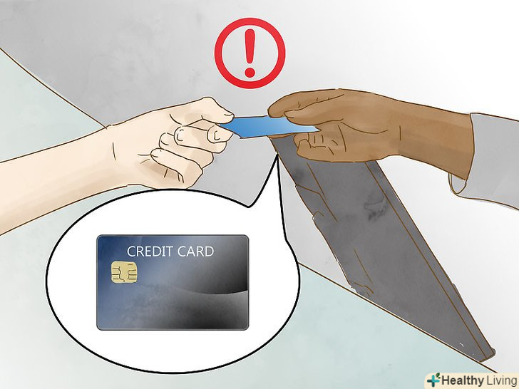 Уникайте шахрайських дій з картами оплати. особливо це важливо, якщо ви подорожуєте з сім'єю або в групі, коли ви можете покласти карту на стійку, а самі відволіктися на щось ще. Так Вашу карту легко швидко сфотографувати на мобільний телефон і отримати про неї всю інформацію.- Тримайте платіжну картку в руці або зберігайте в гаманці або сумці до тих пір, поки працівник рецепції не буде готовий здійснити оплату.