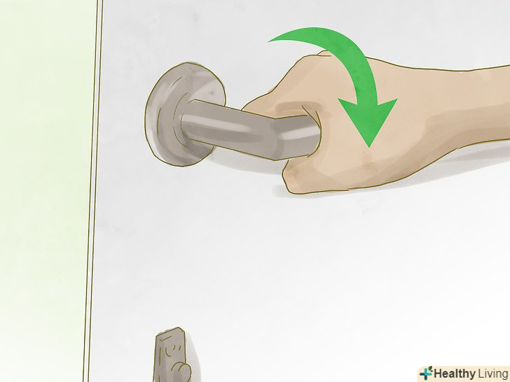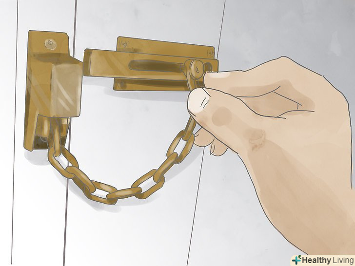 Використовуйте замок на двері, коли перебуваєте всередині номера. більшість номерів готелю обладнані засувом і додатковими замками-запобіжниками, розташованими над або під дверним замком. Найчастіше ці замки працюють за принципом клямки на ланцюжку.- Деякі замки безпеки не встановлені належним чином або ж кріпляться на слабких дверних рамах. Спробуйте потягнути двері в протилежну сторону. Якщо замок або дерев'яна арка двері рухаються або деформуються, значить, забезпечення безпеки знаходиться на мінімальному рівні. [11]