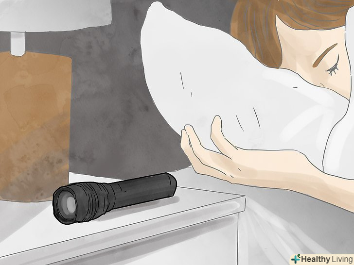 Зберігайте ліхтарик поруч з місцем, де спите. це особливо важливо для тих місць, де часто трапляються природні катаклізми, наприклад, землетруси. Стихійні лиха можуть викликати порушення в подачі електрики, і вам доведеться дертися в темряві. Невеликий ліхтарик біля ліжка або на нічному столику забезпечить вас світлом в разі необхідності.- У більшості мобільних телефонів є функція "ліхтарик". Однак багато людей ночами ставлять телефони на зарядку, і в разі катастрофи зарядки може залишитися дуже мало. Тому під час подорожі рекомендується мати при собі ліхтарик на батарейках. [12]