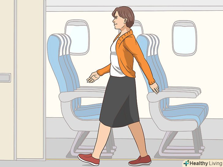 Встаньте і порухайтеся. походіть туди-сюди по салону, можна навіть трохи розтягнутися, де є побільше місця, наприклад, біля туалетів. [3]- Будьте обережні, щоб при цьому не вдарити і не зачепити інших пасажирів. І не входьте в зони обмеженого доступу, в які вам входити не можна.