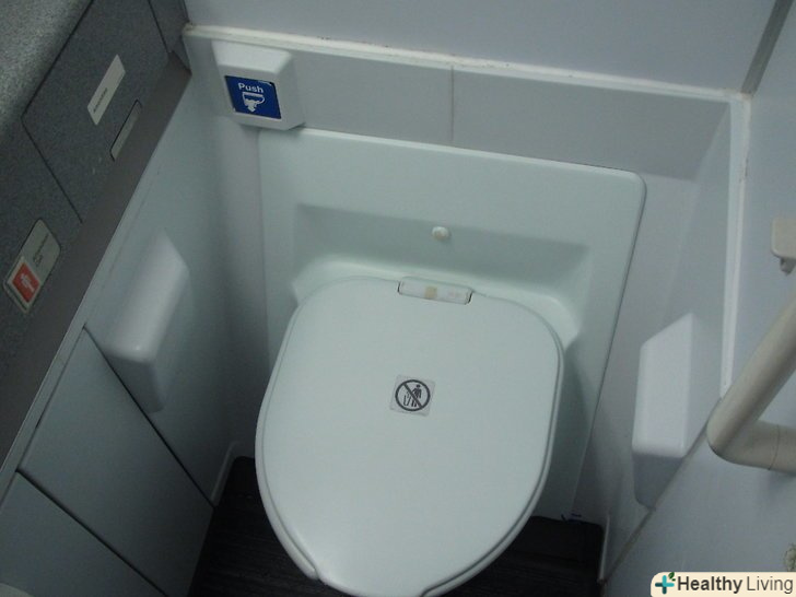 Сходіть у вбиральню перед зльотом. перебувати в кабінці туалету під час турбулентності - небезпечно, тому варто заздалегідь про це подбати, щоб зменшити шанси перебування в кабінці в невідповідний момент. Намагайтеся не пити діуретики, чай і каву. Якщо турбулентність почалася, а ви не встигли вийти з туалетної кабінки, то тримайтеся за ручки, розташовані всередині.