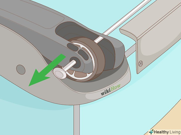 Зніміть скобу, яка утримує коліщатко. коли ви викрутити всі гвинти, коліщатко буде триматися тільки за рахунок металевої скоби, насадженої на болт з обох сторін. Зніміть скобу і болт і відкладіть їх убік. [6]- Скоба знаходиться в центрі коліщатка.