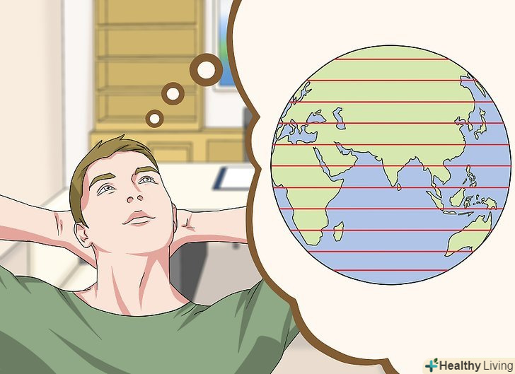Визначте географічну широту і довготу. іноді потрібно вказати більш точне місце розташування, ніж номер паралелі і меридіана, відстань між якими дуже велике. Значення географічної широти і довготи можна розбити на хвилини і секунди. Однак спочатку потрібно знайти паралель і меридіан. Визначте, поруч з якою паралеллю і меридіаном розташоване вибране місце. [4]- Наприклад, це місце розташоване поруч з паралеллю 15° С. ш. і меридіаном 30° в. д.