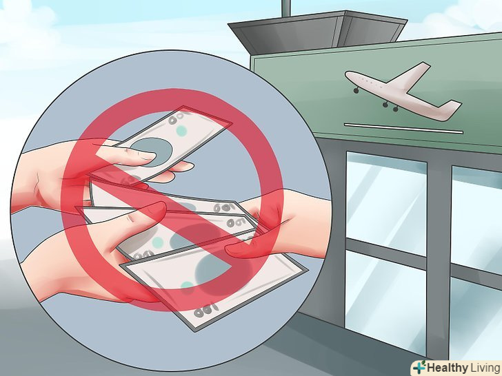 Обміняйте валюту у вашій рідній країні. швидше за все, вам будуть радити зробити це в країні, в яку ви їсте, але, можливо, вам буде потрібна деяка сума в місцевій валюті вже після прибуття (мало що може трапитися). Тому краще мати на руках місцеву валюту заздалегідь (в тому числі дрібні купюри і монети).- Сума залежить від країни, в яку ви їсте, але вдома краще обміняти $50 (або близько того).