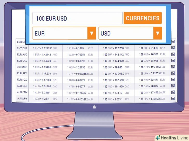 Пояснення процесу. Якщо раніше ви ніколи не обмінювали валюту, вивчіть сам процес, щоб уникнути всяких неприємностей. Основа процесу в тому, що вам необхідно знайти посередника (банк, пункт обміну), який обміняє валюту вашої країни проживання на валюту країни, в яку ви приїхали, за певну винагороду. Важливо пам'ятати, що деякі валюти коштують дорожче, ніж інші. Наприклад, один євро коштує $ 1,10 доларів США, тобто якщо ви хочете обміняти $100, Ви отримаєте 91 Євро.- Якщо валюта вашої рідної країни дорога, а валюта країни перебування дешева, Ви отримаєте велику суму в місцевій валюті.