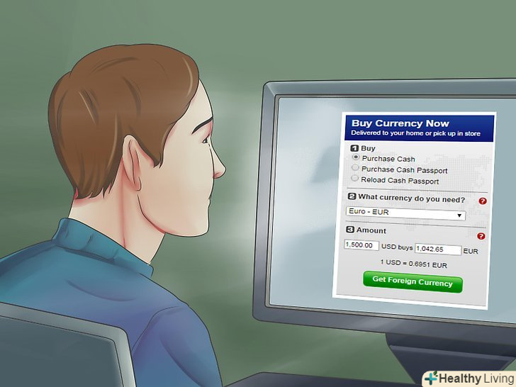 Обміняйте валюту онлайн (в Інтернеті). це потрібно зробити до від'їзду, так як в країні перебування робити це буде ризиковано. У мережі обмінні пункти пропонують вигідні обмінні курси і беруть невелику плату за послуги, але вартість відправки грошей у вашу країну може зробити цей метод невигідним. Однак якщо вам лінь їхати в банк, скористайтеся саме цим методом.- Цим методом вигідно користуватися тоді, коли вам потрібно обміняти велику суму (наприклад, сотні тисяч доларів), тому що в цьому випадку мережеві обмінні пункти готові відправити вам гроші за свій рахунок. [1]