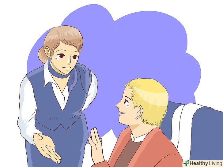 - Не пийте занадто багато алкоголю на борту або повністю цього уникайте. Ви у відповіді за свої вчинки, а це має на увазі і знання того, коли потрібно зупинитися вживати спиртні напої. Один або дві склянки – це більш ніж достатньо на такій висоті. Таким чином, ви можете уникнути зневоднення організму або того, щоб бути джерелом неприємностей на борту. Замість цього, постійно потягуйте фруктові соки (не газовані/не шипучі напої).