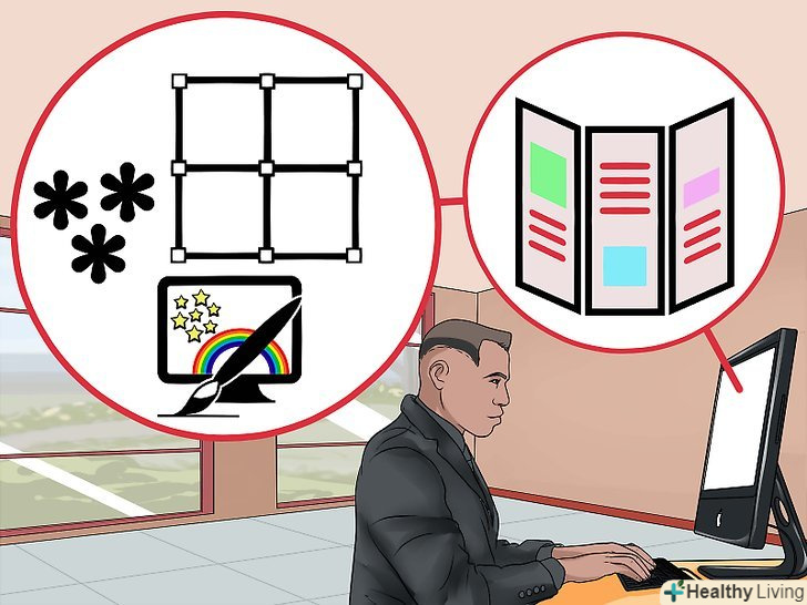 Доповніть брошуру рамками, зірочками і візерунками. незважаючи на те, що ніколи не слід занадто сильно відволікати увагу читача від вмісту тексту, є кілька способів, які можуть допомогти вам розповісти потенційному клієнту свою історію.- Використовуйте тонкі рамки для кожного окремого блоку брошури. Товсті рамки можуть відволікати погляд. Рамки слід зробити трохи більш світлими або темними, ніж основний фон самої брошури.