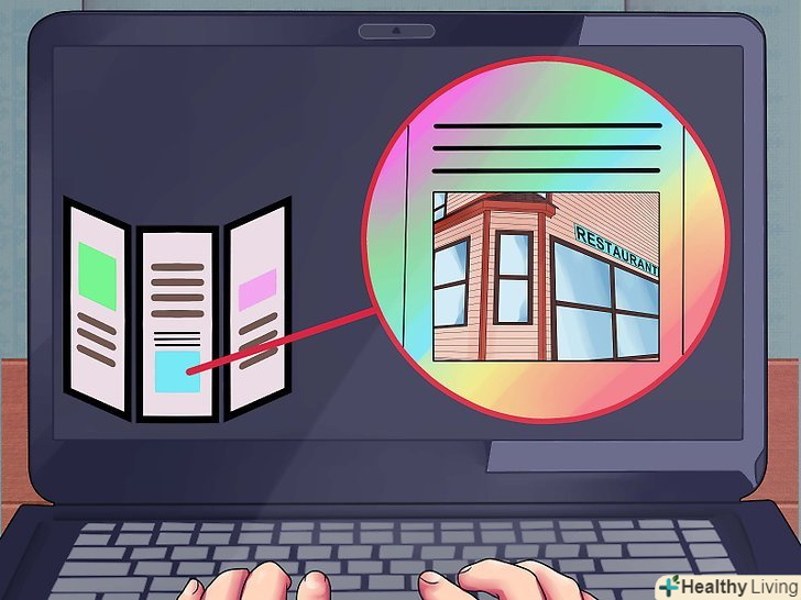 Організуйте брошуру таким чином, щоб текст і візуальні образи поєднувалися один з одним. розділи тексту з 3-4 речень повинні відповідати тому, про що повідомляють додані фотографії. Наприклад, якщо розділ описує кафе і ресторани, прикладіть фотографію ресторану.