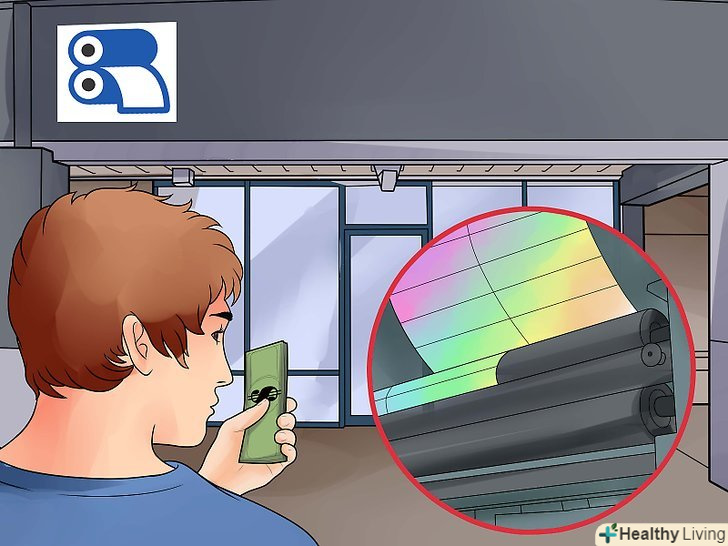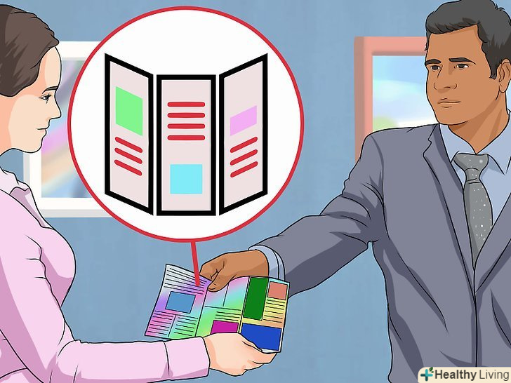 Витратьте на професійну роздруківку вашої брошури. якщо ви студент, до для виконання роботи вистачить і складеного навпіл звичайного аркуша А4. Однак професіоналам слід організувати роздруківку брошур на спеціалізованому друкованому обладнанні.- Повідомте друкарні, що вам необхідно роздрукувати брошури на високоякісному папері. Дешева тонкий папір буде легко м'ятися, рватися і розкисати від води. Товста глянцевий папір буде краще протистояти таким неприємностям, і брошуру з неї буде помітно зручніше покласти в сумку або в кишеню, не боячись привести в непридатність. [9]