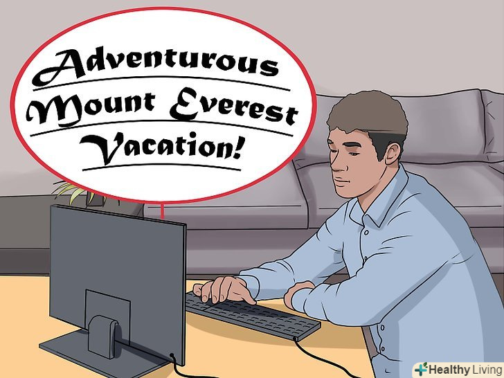 Напишіть захоплюючий заголовок. прості заголовки, як "Турпоїздка в Санкт-Петербург" або " Відпочинок в Сочі», будуть звучати занадто нудно для потенційних клієнтів і не змусять їх звернути увагу на решті текст брошури. У заголовку слід використовувати описові прикметники і навіть дієслова, щоб зацікавити читача. [4]- Запишіть на папері кілька не дуже часто використовуваних прикметників, наприклад: незвичайний, запаморочливий, приголомшливий, фантастичний, захоплюючий і так далі. Поставте ці слова на перше місце в своєму заголовку, щоб око автоматично чіплявся за ключове слово при читанні зліва направо.