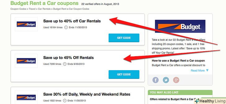 Шукайте коди для знижок. вони часто доступні на певних кредитних картах, в періоди різних акцій і т.п. ви можете заробити знижку або безкоштовні бали або кілометри. Щоб утримати клієнта, компанії завжди пропонують нові бонуси, знижки та пропозиції заощадити гроші.- Якщо ви не хочете переглядати і шукати все окремо, а також володієте англійською мовою, перейдіть на сайт DealMine.com, щоб порівняти кращі пропозиції.