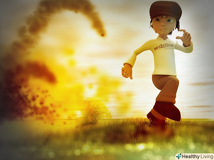 Негайно кидайтеся на землю, якщо почалася детонація. солдати кричать " лягай!». Якщо ви помітили хоч одна ознака від останнього кроку, або якщо хтось поруч вигукує попередження, що він детонував міну, то кидайтеся на землю якомога швидше. У вас буде не більше секунди, перш ніж міна вибухне, але якщо ви використовуєте цю секунду мудро, ви будете в змозі уникнути серйозної травми або смерті. Міни вибухають вгору, тому найбезпечніше на землі.- Якщо можливо, впадіть назад, щоб якнайкраще захистити верхню частину від шрапнелі. Незважаючи на те, що цілком ймовірно впасти на іншу міну, площа прямо за вами є найбезпечнішим місцем для падіння, тому що ви тільки що по ній ходили.