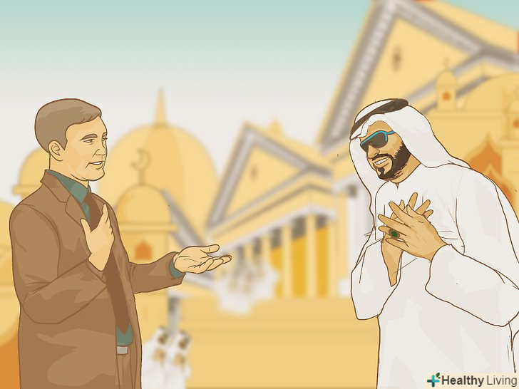 Не ображайте оточуючих. коли будете збирати інформацію про країну, обов'язково дізнайтеся список вчинків, які засуджуються місцевою культурою. Наприклад, в країнах Близького Сходу, в Індії та деяких частинах Африки неввічливо пропонувати для рукостискання ліву руку, так як вважається, що вона використовується для цілей особистої гігієни. Будьте в курсі особливостей країни, щоб не здійснювати нетактовних помилок . [12]- Намагайтеся не торкатися до голів інших людей в тих країнах, де практикують буддизм, і стежте за тим, щоб оточуючі не бачили підошву вашого взуття в арабських країнах, так як це вважається явною ознакою неповаги.
