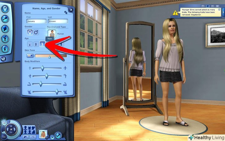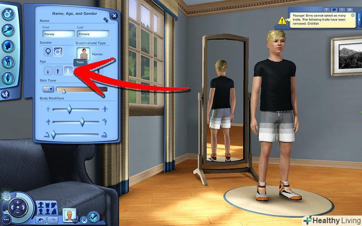 Перетворіть його на підлітка, змінивши його вік.можна змінити і інші параметри вашого Сіма.