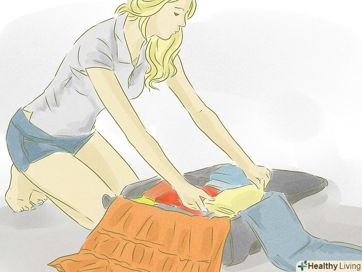 Підготуйте речі. можливо, вам потрібно упакувати свої речі, дитячі речі та подарунки для когось іншого. Все це може бути складно проконтролювати, так що трохи підготовки не зашкодить. Заздалегідь упакуйте одяг у валізу і переконайтеся, що все влазить. Віддавайте перевагу простий і легкому одязі; складайте її так, щоб зберегти місце в багажі. [2] Подумайте, чи варто упаковувати подарунки до поїздки, або краще зробити це по прибуттю.- Якщо ви подорожуєте на машині, вам варто скласти окрему сумку з речами, які можуть знадобитися під час поїздки.