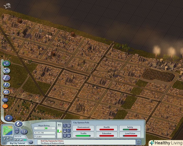 Повертайтеся до першого Міста.приберіть ті чималі промислові зони, які ви створювали раніше. Більшість ваших Симів тепер працює в індустріальному місті; мало хто працює на електростанції. Продовжуйте створювати житлові зони низької щільності до тих пір, поки розвиток не призупиниться. Як тільки ваше місто досягне населення більше 1 тис.100 сімів, можете переходити до будівництва житлових кварталів середньої щільності. Не забудьте забезпечити ці зони водою.