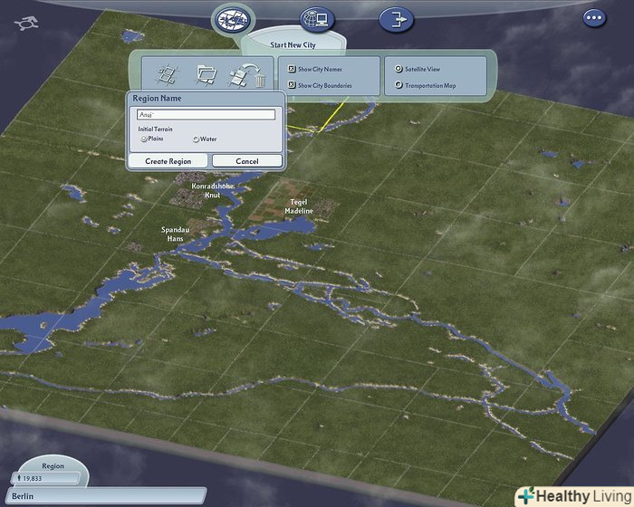 Створіть новий регіон.виберіть, чи буде це рівнина або вода. Назвіть ваш регіон. Потім, клікніть на одну ділянку вашого регіону і натисніть"грати".