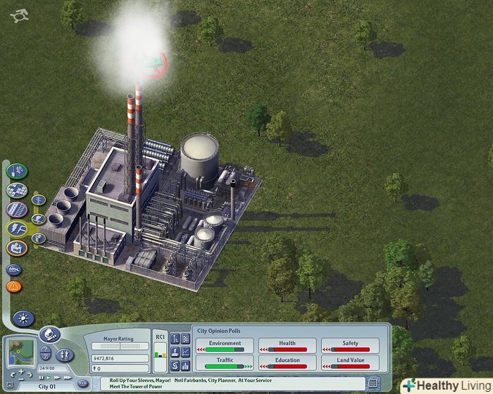 Помістіть нафтову електростанцію в кутку карти.спочатку встановіть потужність приблизно на 1,000 одиниць, продовжуйте стежити за індикатором потужності. Регулярно коригуйте його, щоб Ваше місто стабільно отримувало необхідне харчування.
