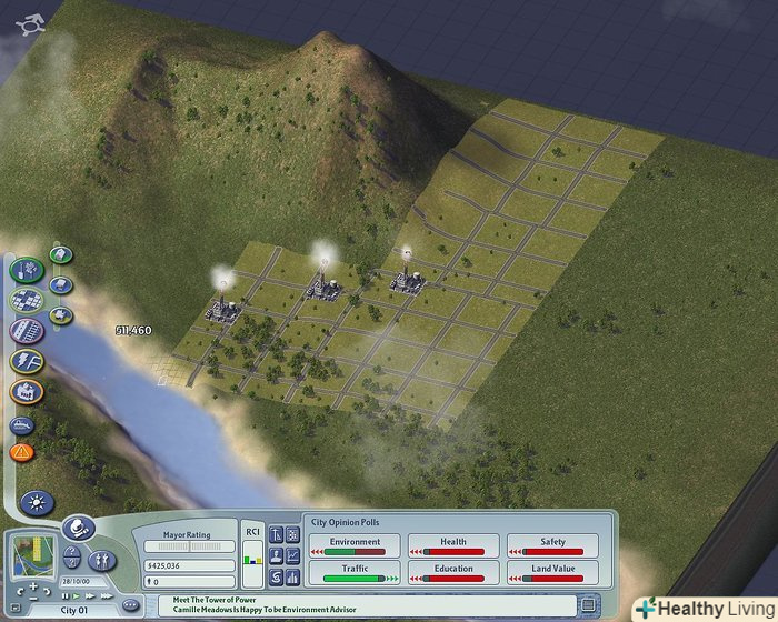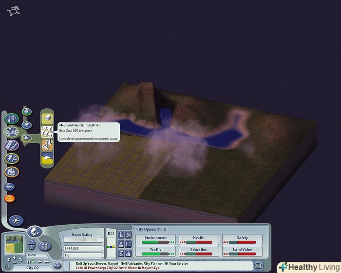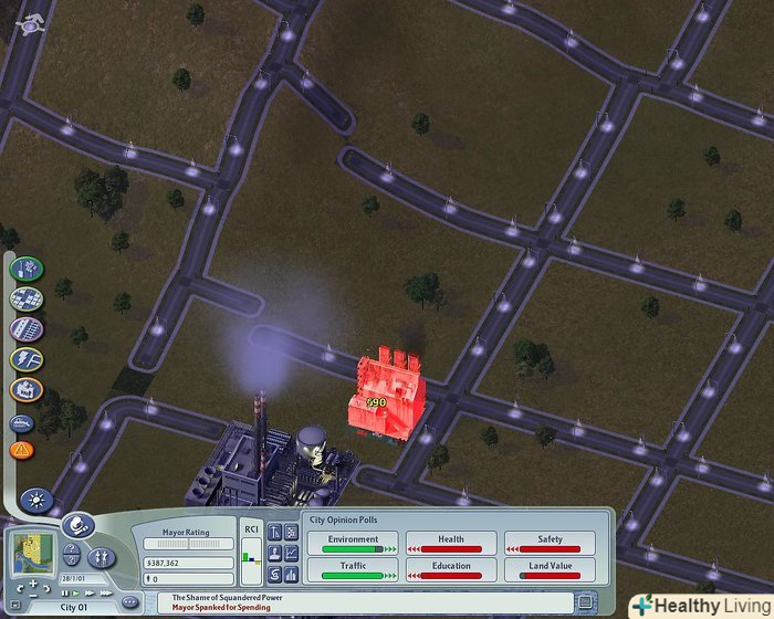 - Назвіть це місто і розмістіть в ньому комерційні зони низької щільності. Побудуйте газову електростанцію. Не забудьте про те, що вона повинна бути недалеко від ваших комерційних кварталів. До цього моменту, швидше за все, попит на комерційний розвиток буде дуже високий-ваші квартали швидко почнуть розвиватися.
