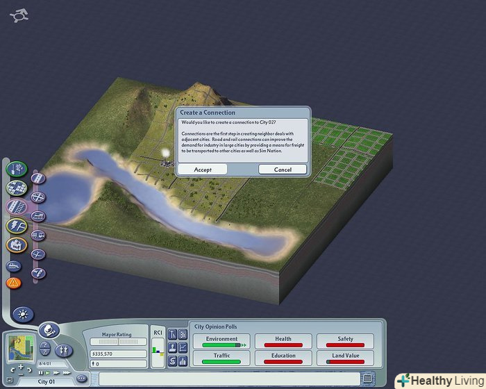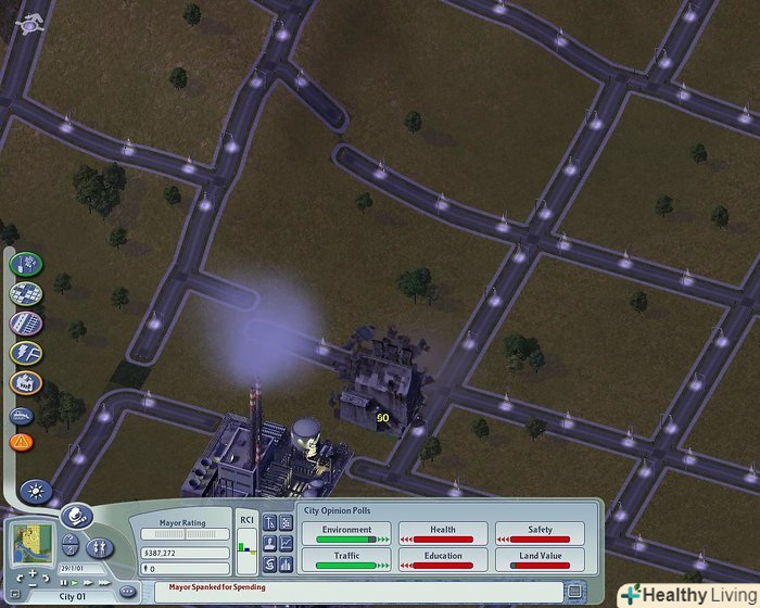 Розмістіть безліч промислових зон середньої щільності.не додавайте житлових кварталів. Замість того щоб ставити ще одну електростанцію і в цьому місті, ви можете протягнути лінії електропередач до краю міста і створити з'єднання з сусіднім містом. Погодьтеся на пропоновану угоду з купівлі електроенергії. Таким чином, ви купуєте електроенергію за низькою ціною, замість того, щоб підтримувати свою власну станцію.- Після цього ви побачите швидкий розвиток фабрик та інших будівель. Це станеться тому, що попит на робочі місця у Вашому місті Великий, адже ви пропонуєте їх зовсім небагато. Попит завжди буде "перетікати" між містами-люди з сусіднього міста будуть працювати у вашому промисловому центрі. Як тільки розвиток зійде нанівець, збережіться і вийдіть в регіон.