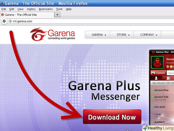 Скачайте клієнт Garena+.ви можете завантажити клієнт з сайту Garena+. Запустіть інсталяційний файл, як тільки він завантажиться. Інсталяційний файл важить близько 60мб.