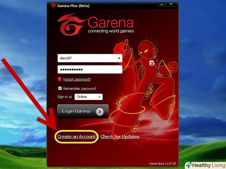 Створіть обліковий запис.якщо у Вас вже є Garena аккаунт, введіть його і зайдіть. Якщо вам потрібно буде створити новий аккаунт, клацніть по посиланню " Create an Account "(створити аккаунт) в самому низу програми. Введіть діючу адресу електронної пошти та створіть ім'я користувача. Garena перевірить, чи не зайнято це ім'я. Якщо воно зайнято, вам потрібно буде вибрати нове ім'я.