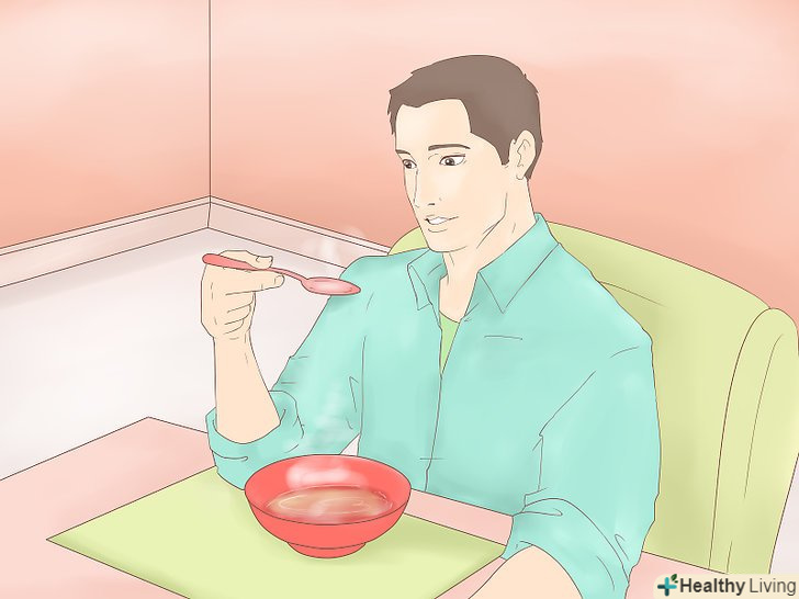Їжте менші порції. намагайтеся їсти менші порції, але частіше — таким чином ви краще забезпечите свій організм поживними речовинами при діареї мандрівників, ніж шляхом триразового харчування. [30] крім того, менші порції легше засвоюються шлунком.- Солоні продукти, наприклад добре проварені супи і запечатані спортивні напої, також допоможуть відшкодувати втрату електролітів при діареї. [31]