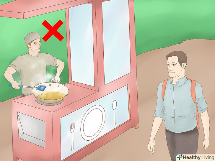 Утримуйтеся від покупки їжі у вуличних торговців. багато випадків діареї мандрівників викликані вживанням їжі, купленої у вуличних торговців, особливо тих продуктів, для приготування яких потрібно багато операцій і незначна термічна обробка. [13] вам ймовірно захочеться спробувати страви місцевої кухні, проте, слід уникати вуличних торговців.