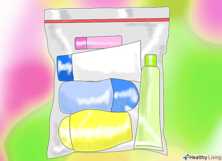 Якщо туалетні приналежності можна купити на місці за розумною ціною, то обміркуйте такий варіант, взявши з собою лише дводенний запас.- Завжди кладіть рідини в надійні закриваються пакети, щоб не допустити можливих витоків. Під час перельотів витоків не уникнути через мінливого тиску, тому не втрачайте з уваги цей момент.