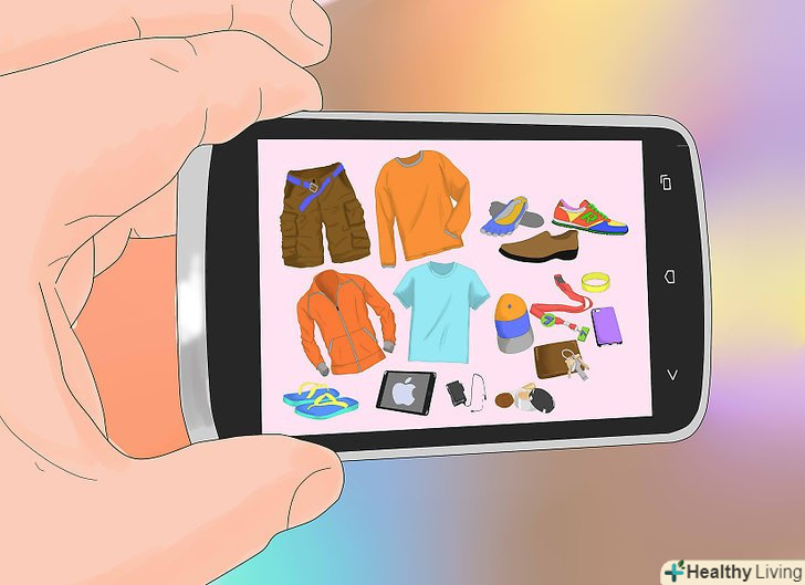 Розкладіть всі речі з Вашого списку на ліжку. приберіть все те, без чого зможете обійтися. Потім сфотографуйте їх Вашим смартфоном. Так ви отримаєте візуальний запис всіх взятих речей; не потрібно брати з собою списки і запам'ятовувати, що ви перепакували, коли міняли готель або відправлялися в наступне місто.