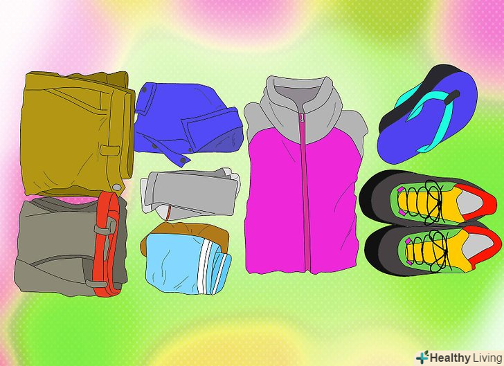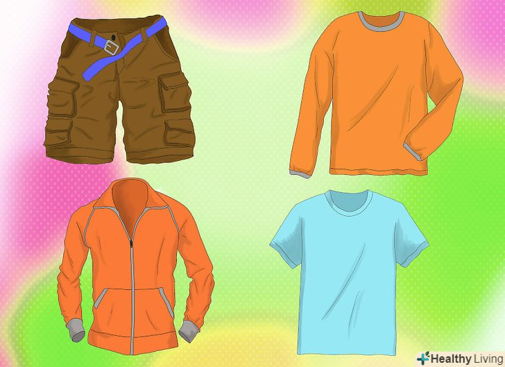 Вибирайте одяг основних кольорів. дотримуйтесь єдиної колірної схеми.- Наприклад, низ може бути темним або кольору хакі, а верх – під стать штанів або шортів. Так ви зможете скоротити потрібну кількість одягу.