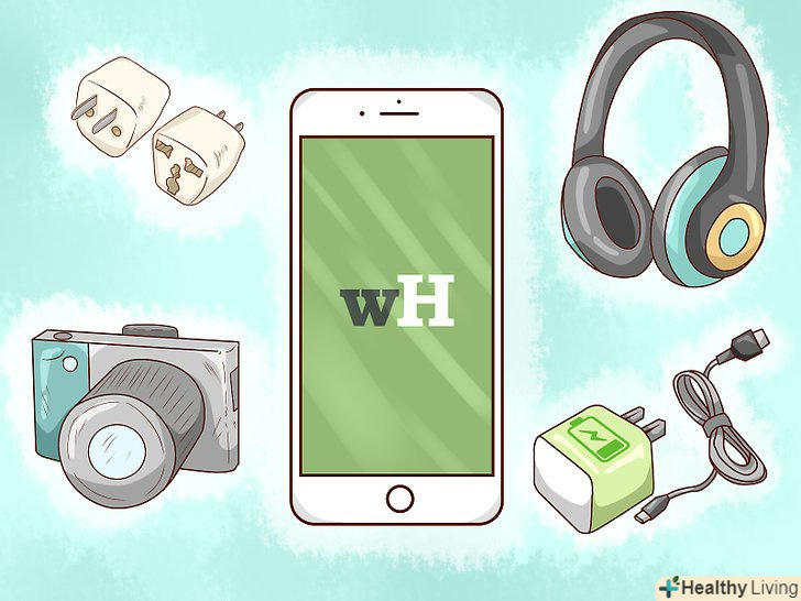 Упакуйте електроніку та зарядні пристрої. що потрібно не забути: зарядний пристрій для телефону, мережевий адаптер, відео - або MP3-плеєр, навушники, камеру, електронну книгу. У п'ятиденній поїздці вам напевно знадобляться не всі з перерахованих пристроїв, тому ще раз поверніться до свого плану поїздки і подумайте, чи буде у вас час ними користуватися або краще залишити щось вдома. [12]
