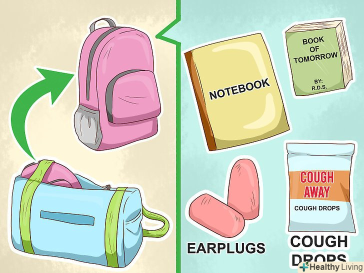 Покладіть в ручну поклажу невелику окрему сумку з усім, що вам може знадобитися в польоті. щоб в літаку все необхідне було в межах вашої досяжності, складіть в невелику сумку книгу, журнал, ручку, папір, навушники, таблетки від кашлю, беруші і так далі. На борту ви зможете вийняти цю сумку з ручної поклажі і тримати під рукою. [16]- Навіть якщо ви відправляєтеся в подорож на автомобілі, дуже зручно мати під рукою невелику сумку з їжею, телефоном, книгою та іншими корисними речами, наприклад з акумулятором для телефону.