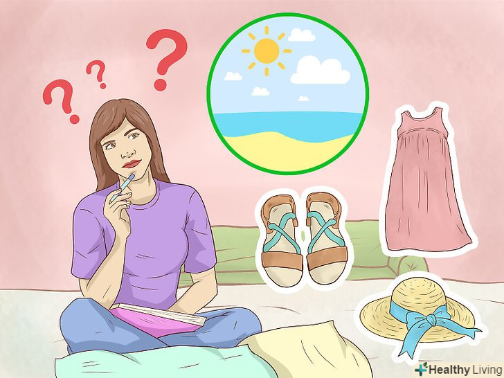 Чим ви плануєте зайнятися на відпочинку? Продумайте, що ви збираєтеся робити: їздити на екскурсії, лежати на пляжі, ходити по музеях або нічних клубах? Якщо ви знаєте заздалегідь, чому буде присвячений кожен день вашого короткого відпочинку, це допоможе підібрати речі правильно. [2]- Наприклад, якщо ви збираєтеся провести тиждень у відокремленому будиночку в лісі, вечірня сукня вам точно не знадобиться.