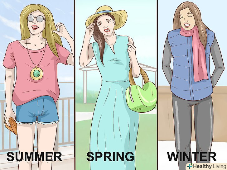 Ретельно підберіть аксесуари до одягу, яку ви берете з собою. Вам можуть знадобитися: сонячні окуляри, панама, шарф і шапка, біжутерія, краватка або ремінь. Не рекомендується брати з собою в поїздку дуже дорогі прикраси, щоб не понести великі фінансові втрати в разі їх крадіжки або втрати. [11]- У поїздці можна купити собі нові аксесуари, наприклад хустку або капелюх, в якості сувеніра. Не беріть з собою те, що плануєте купити на місці.