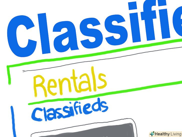 Слідкуйте за розділом оголошень в місцевій газеті. пройдіть по району, в якому ви хочете жити, в пошуках вивісок, які оголошують про оренду житла. Перегляньте журнали або брошури, присвячені оренді житла у Вашому місті. Розкажіть вашим друзям і знайомим про те, що ви хочете зняти квартиру в оренду.