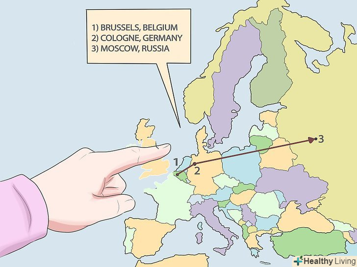 Виберіть маршрут для першої частини подорожі з Лондона. прямих поїздів Лондон – Москва немає. Так що, вам доведеться зробити, як мінімум, 3 пересадки. Придбайте карту Європи, якщо у вас її ще немає або ви не знаєте її на пам'ять.
