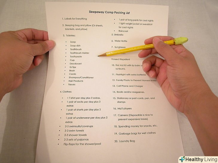- Якщо ви збираєтеся в похід, на ночівлю до когось або в спортивний тур, то не забудьте також про список спорядження крім вашого списку одягу. Більшість таборів надають список всього необхідного. Скористайтеся ним на допомогу самому собі і візьміть цей список з собою, щоб нічого не забути, коли ви почнете збиратися назад додому.