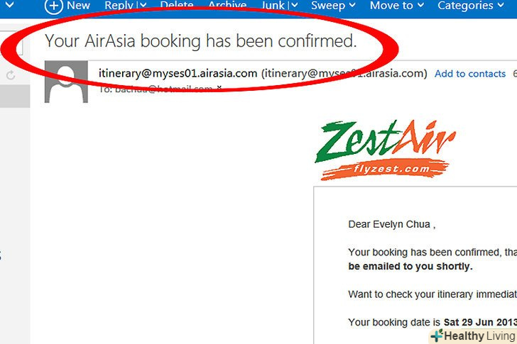 Скористайтеся інтернет сайтом. Перейдіть на AirAsia.com щоб перевірити і обробити вашу бронь.- Підтвердьте ваше замовлення онлайн. Як тільки ви потрапите на сайт, клікніть на закладку "Manage My Booking" нагорі сторінки. Вам треба буде увійти в свій обліковий запис або створити її. Після цього ви зможете ввести номер рейсу або своє ім'я, щоб підтвердити бронь.